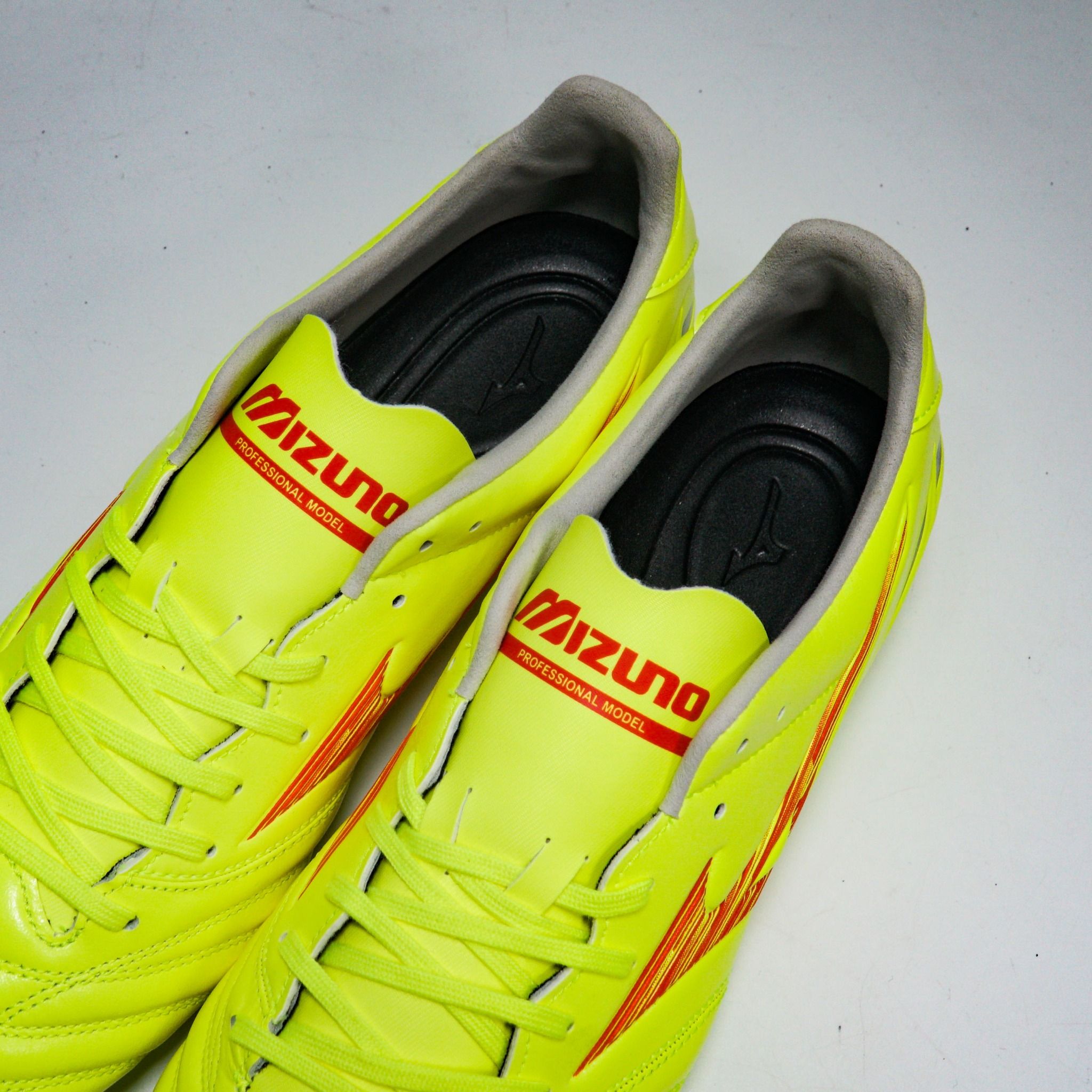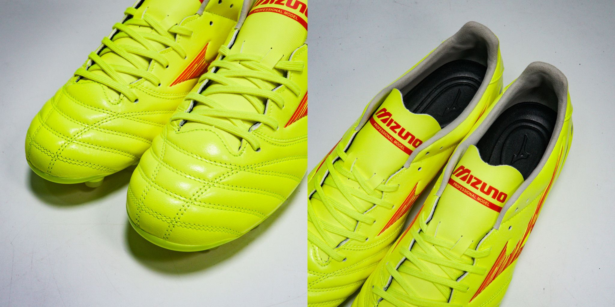 Mizuno Morelia Neo IV Pro FG DYNA - Safety Yellow/Red là mẫu giày chuyên cho sân cỏ tự nhiên 11 người. Mẫu giày này được các cầu thủ đánh giá rất cao vì sự toàn diện, bền bỉ và hỗ trợ các cầu thủ rất tốt. Những cầu thủ có lối chơi thiên về tốc độ và mong muốn một đôi giày nhẹ, êm ái, cảm giác bóng tốt không thể bỏ qua Mizuno Morelia Neo IV Pro FG DYNA - Safety Yellow/Red.