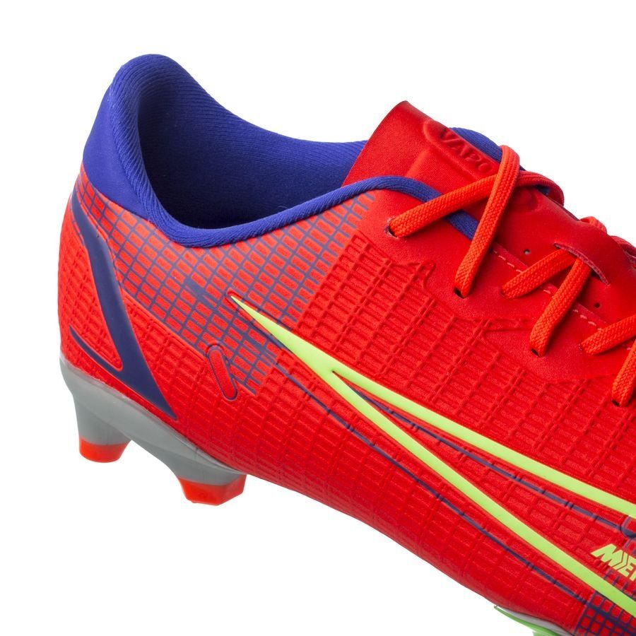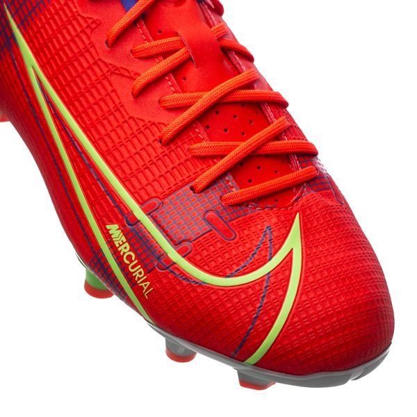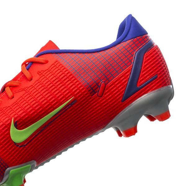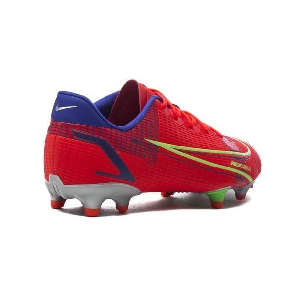Nike Mercurial Vapor 14 Academy MG Spectrum - Bright Crimson/Metallic Silver Kids nằm trong bộ sưu tập ‘Spectrum Pack’, Mercurial bắt mắt với colorway rực rỡ, nổi bật. Phần upper của giày cung cấp cho chúng ta cái nhìn rõ nét nhất về các công nghệ, với các hiệu ứng xuyên qua tương tự như trên Mercurial Dragonfly.