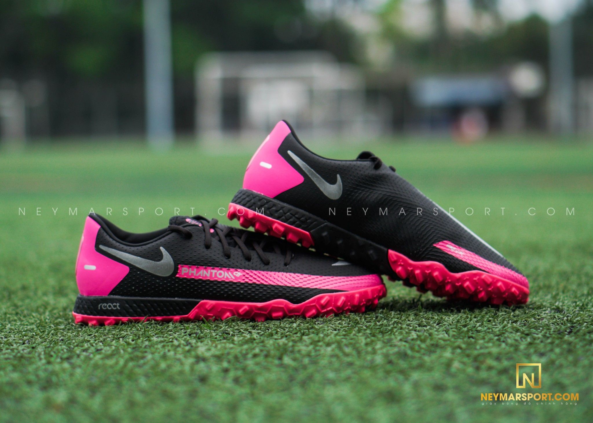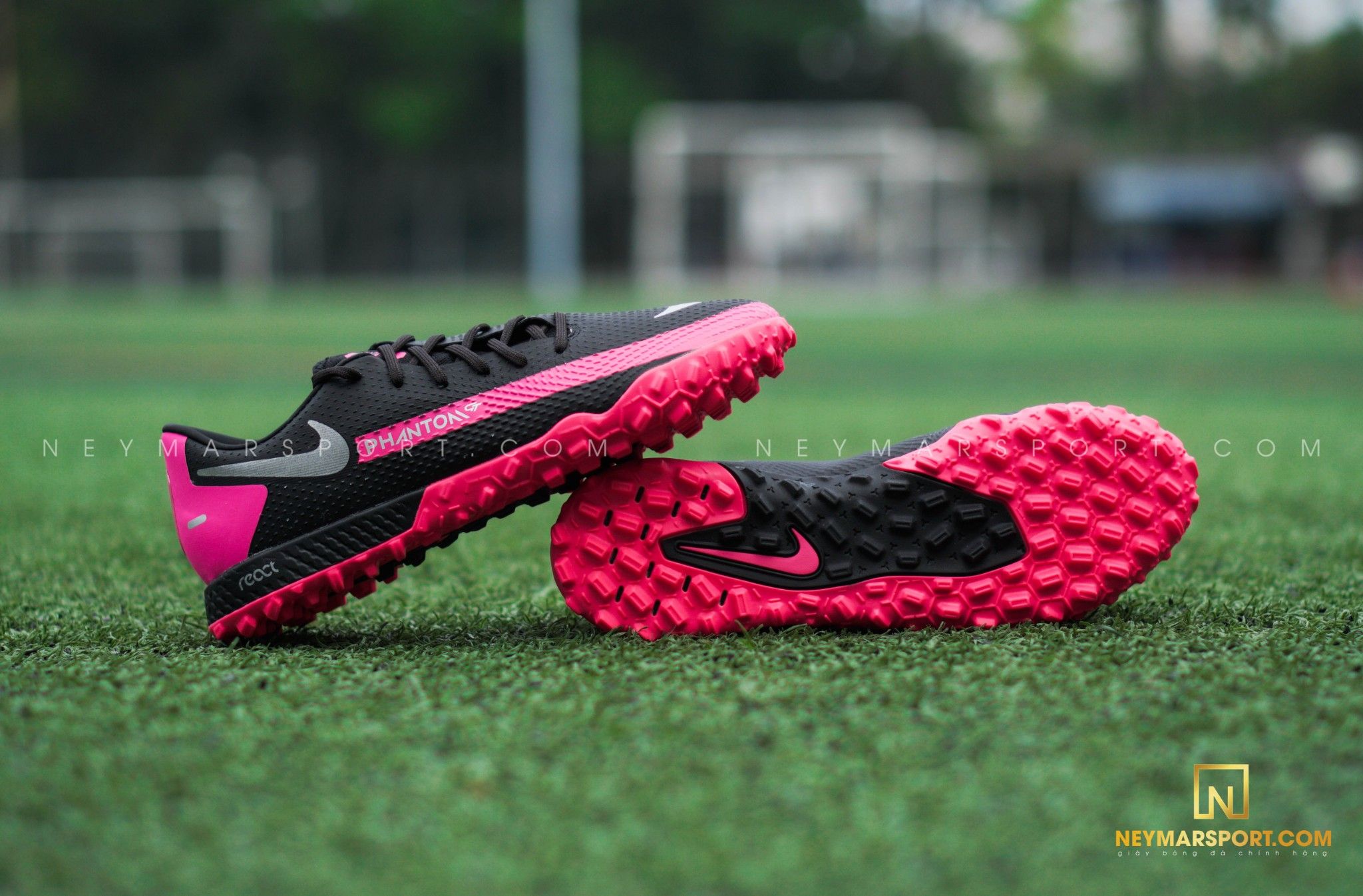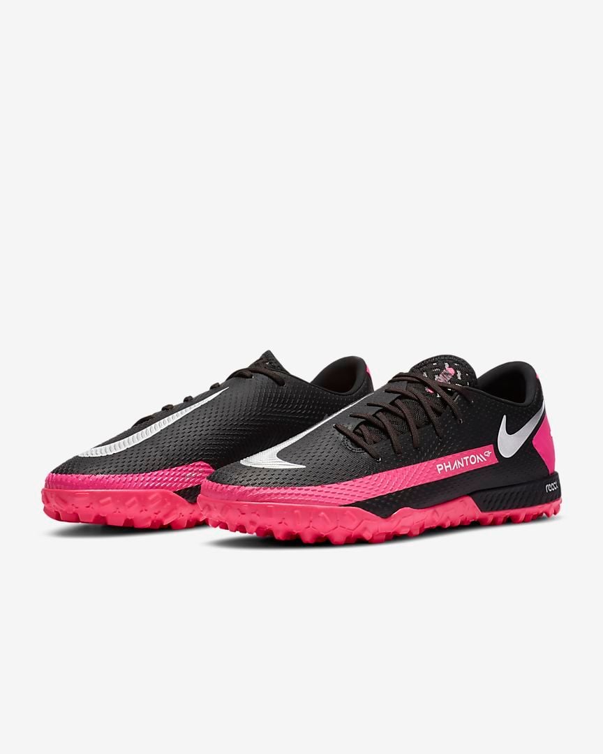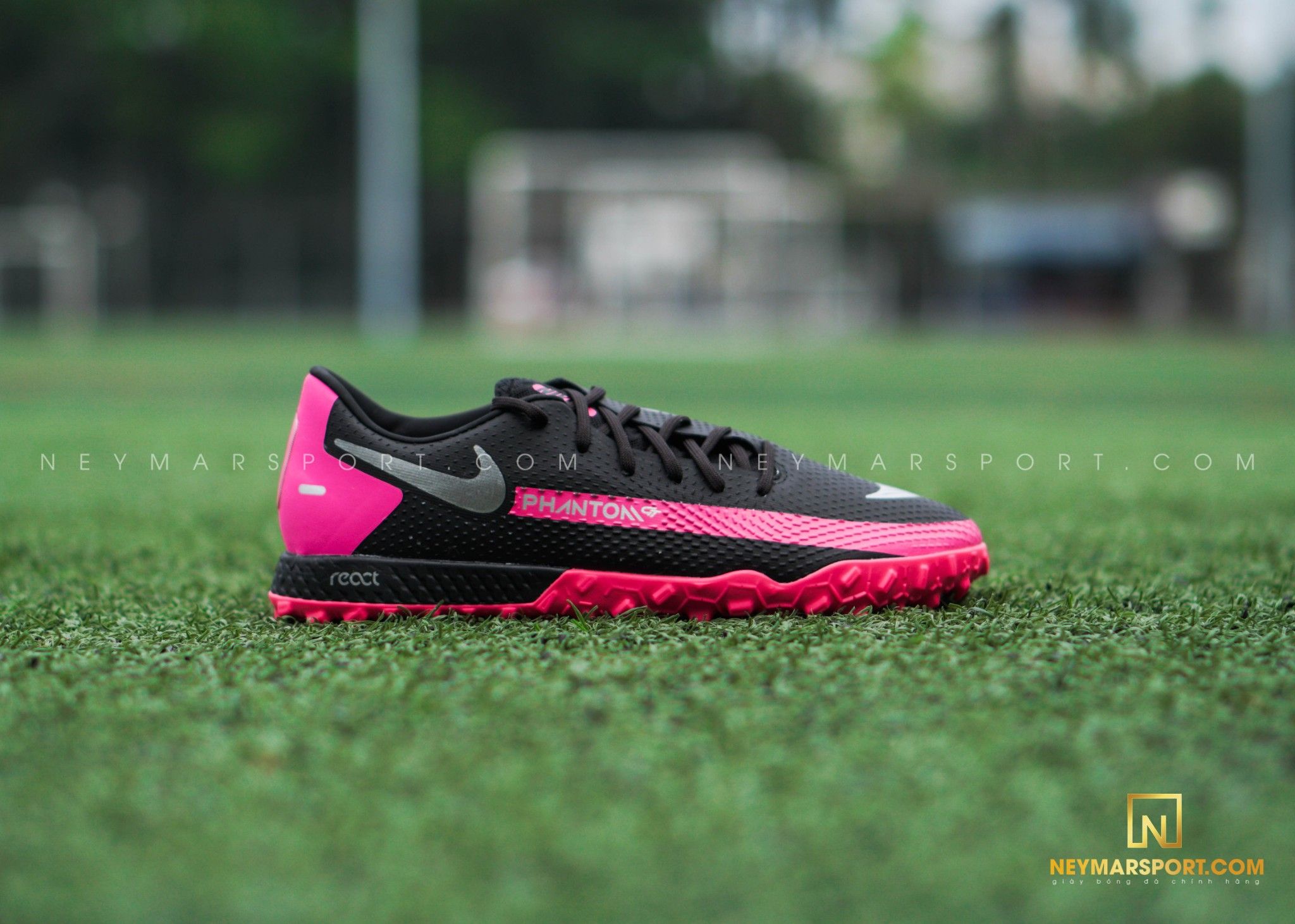 Nike Phantom GT REACT PRO TF - Black/Metallic Silver/Pink Blast là một trong những phiên bản giày cỏ nhân tạo không thể bỏ qua. Một đôi giày hiện đại mang tính cách mạng với nhiều cải tiến vượt trội, ra đời để thay thế Nike Phantom VNM và VSN, đưa Nike về đội hình 3 silo sau hơn một thập kỉ qua.