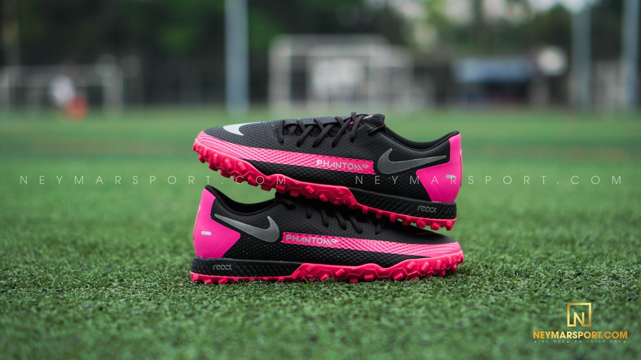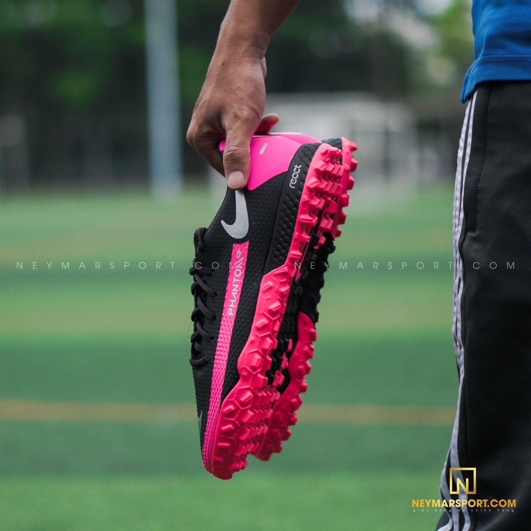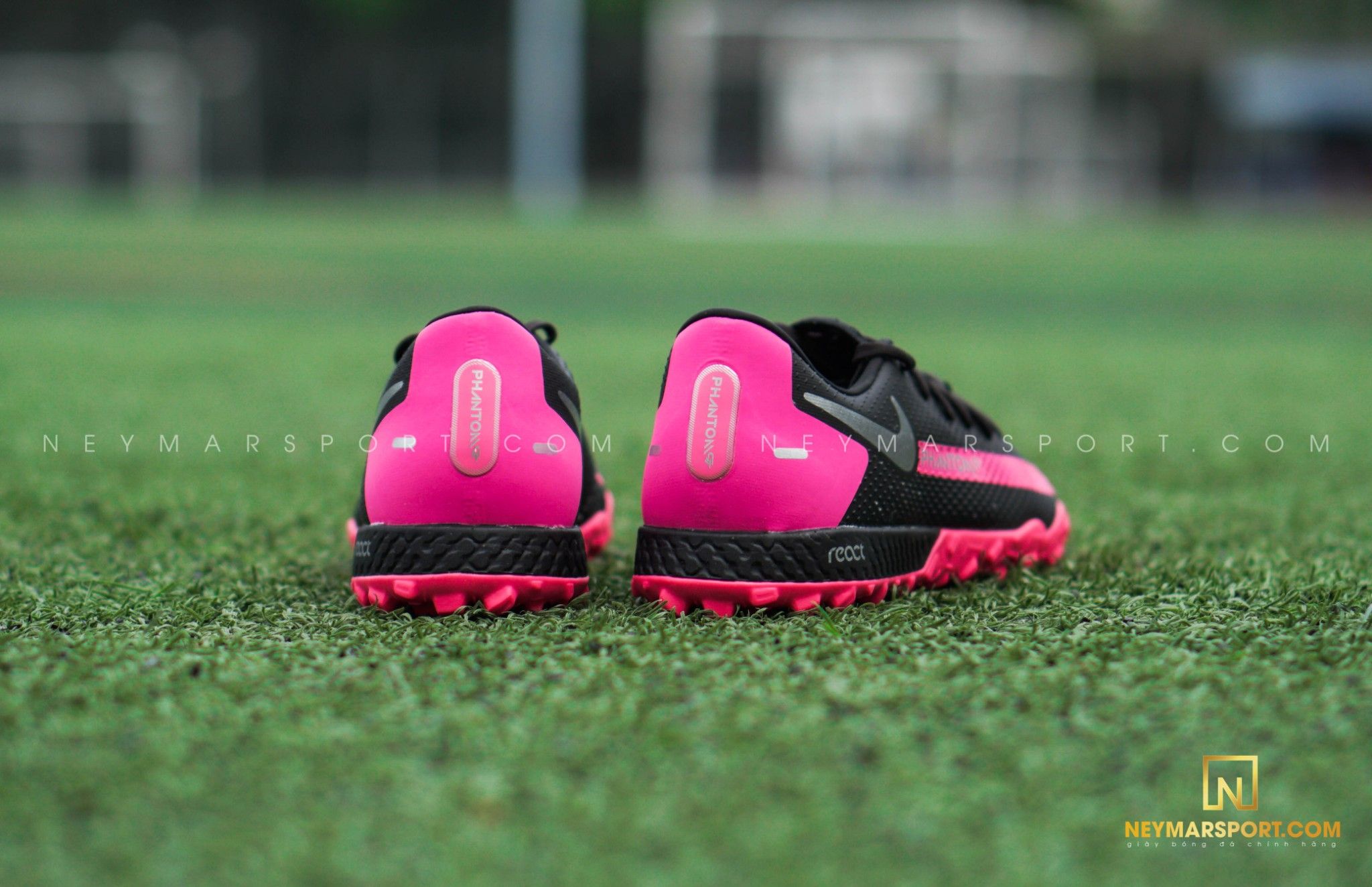 Nike Phantom GT REACT PRO TF - Black/Metallic Silver/Pink Blast là một trong những phiên bản giày cỏ nhân tạo không thể bỏ qua. Một đôi giày hiện đại mang tính cách mạng với nhiều cải tiến vượt trội, ra đời để thay thế Nike Phantom VNM và VSN, đưa Nike về đội hình 3 silo sau hơn một thập kỉ qua.