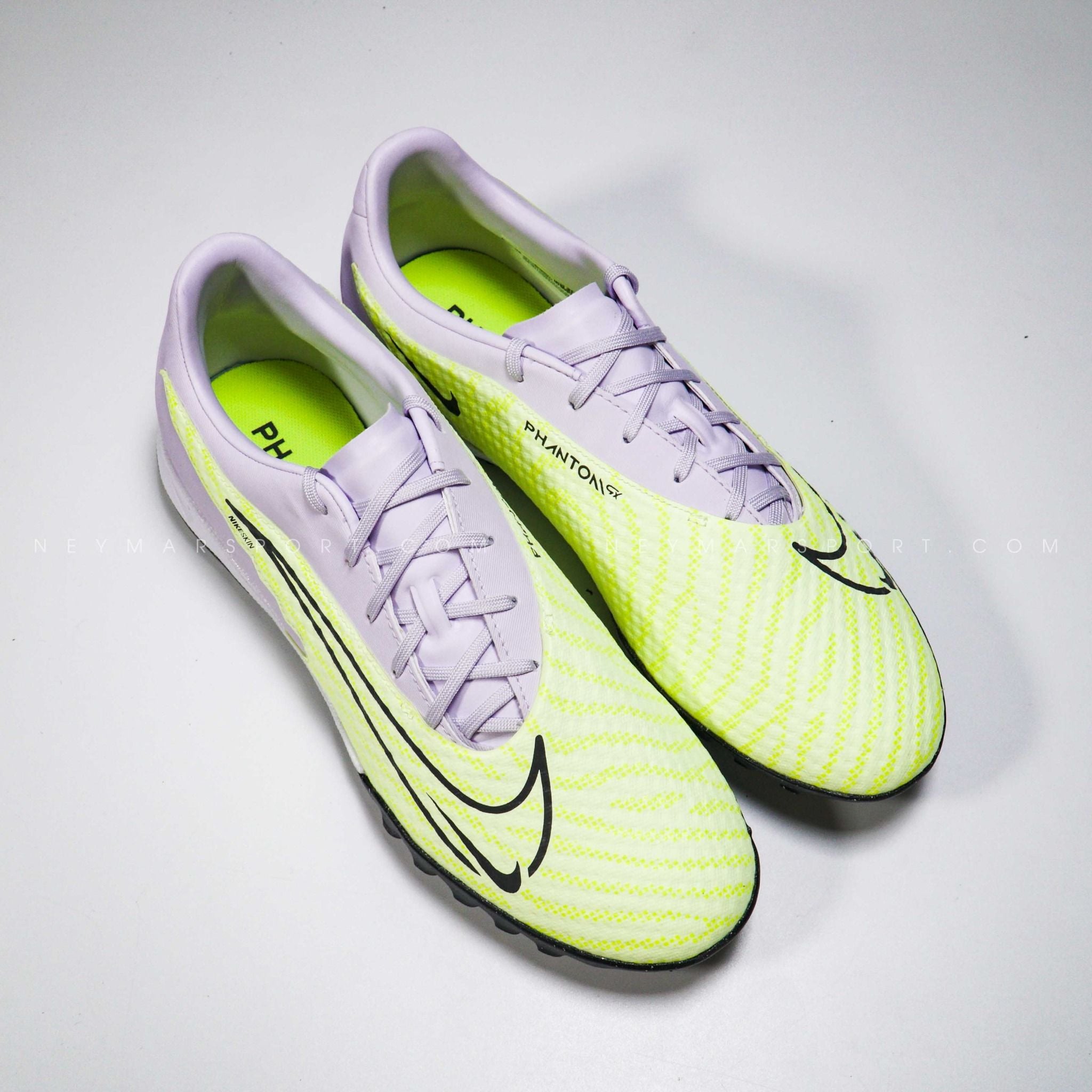 Nike Phantom GX Academy TF Luminous - Barely Volt/Gridiron/Barely Grape là mẫu giày phổ thông dành cho mặt sân cỏ nhân tạo 5-7 người. Về ngoại hình Nike Phantom GX cho chúng ta cảm giác khá giống Hypervenom II, với thiết kế lưỡi gà chéo, tuy nhiên ở lần ra mắt này thì chắc chắc Nike Phantom GX sẽ mang trong mình nhiều công nghệ hơn, và khắc phục những hạn chế của phiên bản tiền nhiệm.