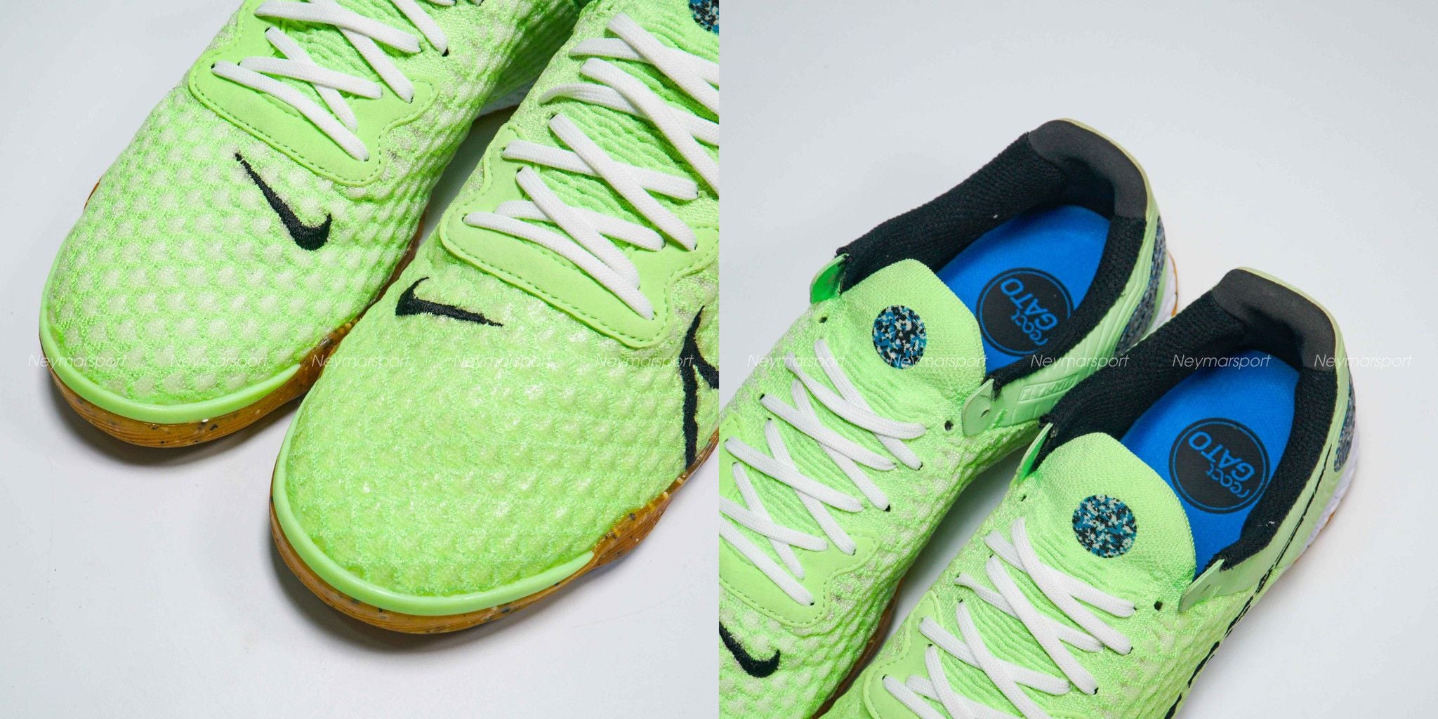 Nike React Gato IC - Lime Glow/Black/White/Lite Photo Blue là phiên bản cao cấp dành cho bóng đá đường phố và sân Futsal. Nike React Gato là kết quả được đúc kết trong Phòng thí nghiệm nghiên cứu thể thao Nike (NSRL) sau khi phân tích và nghiên cứu các động tác di chuyển trên sân bóng đá trong nhà, thu thập đủ các dữ liệu về lực, hướng, kiểm soát bóng. Nghiên cứu này của hãng thể thao Nike liên quan đến các yếu tố tăng cường cảm giác và cải thiện kiểm soát nhịp thi đấu trong bộ môn Futsal trong nhà.