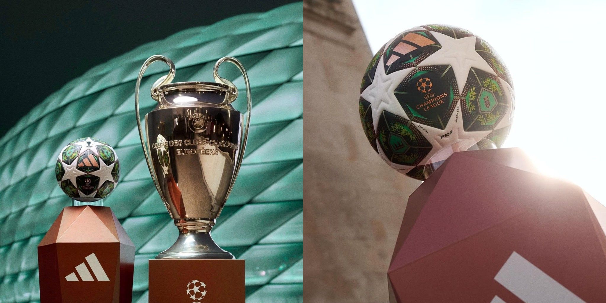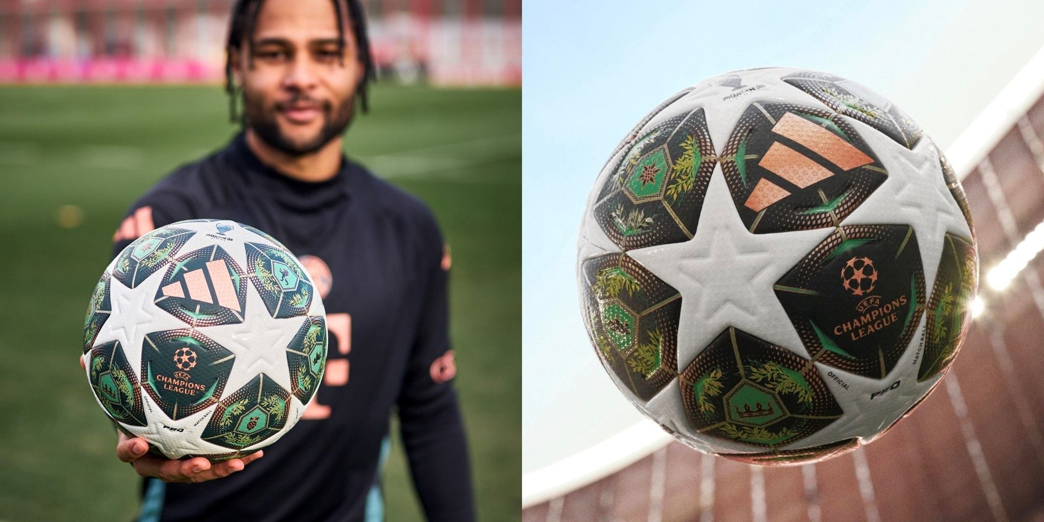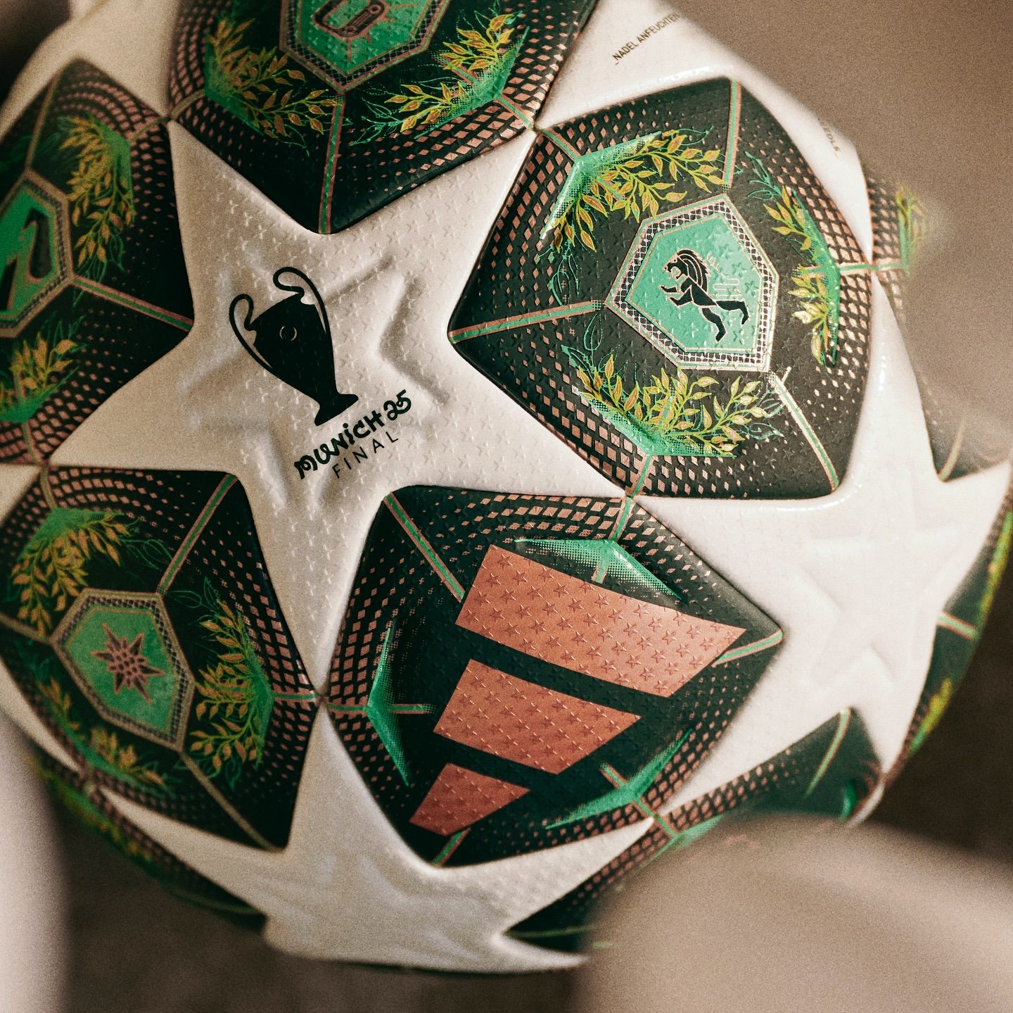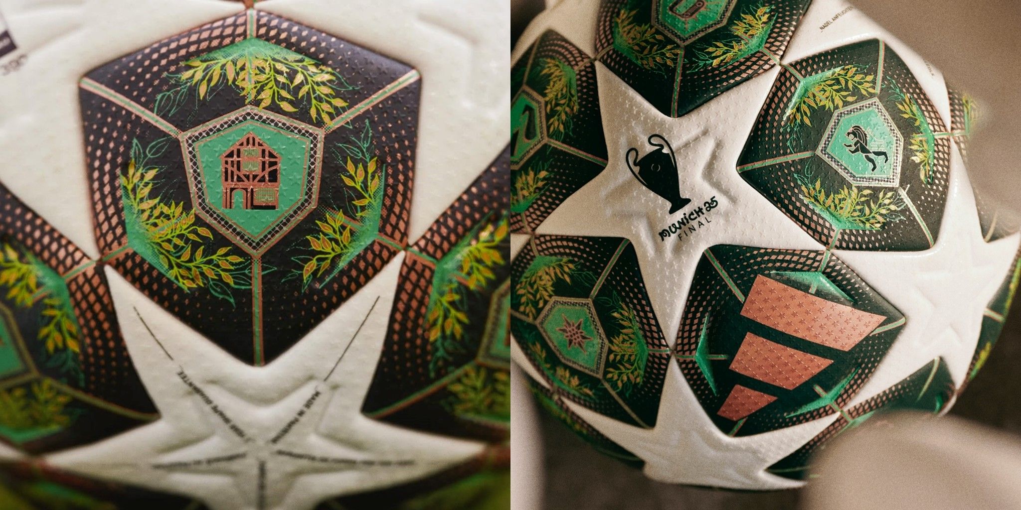 Quả bóng chính thức mới của UEFA Champions League Munich tôn vinh thành phố Munich, nơi đăng cai trận chung kết, với thiết kế lấy cảm hứng từ những mái vòm đồng nhuốm màu thời gian và vẻ đẹp choáng ngợp của thiên nhiên Bavaria.