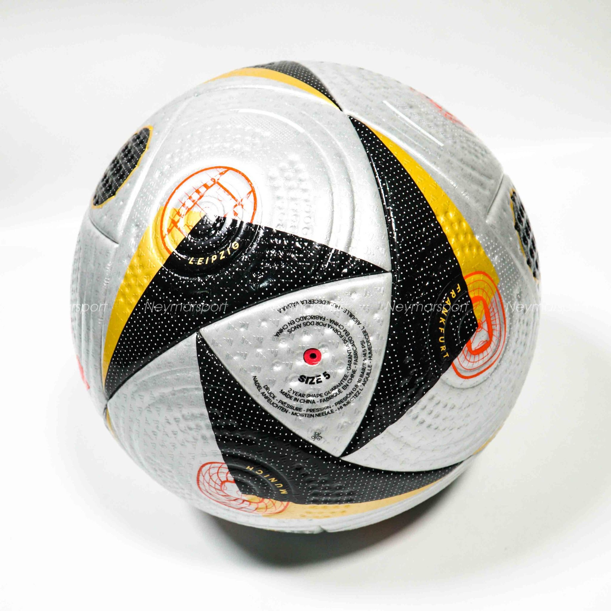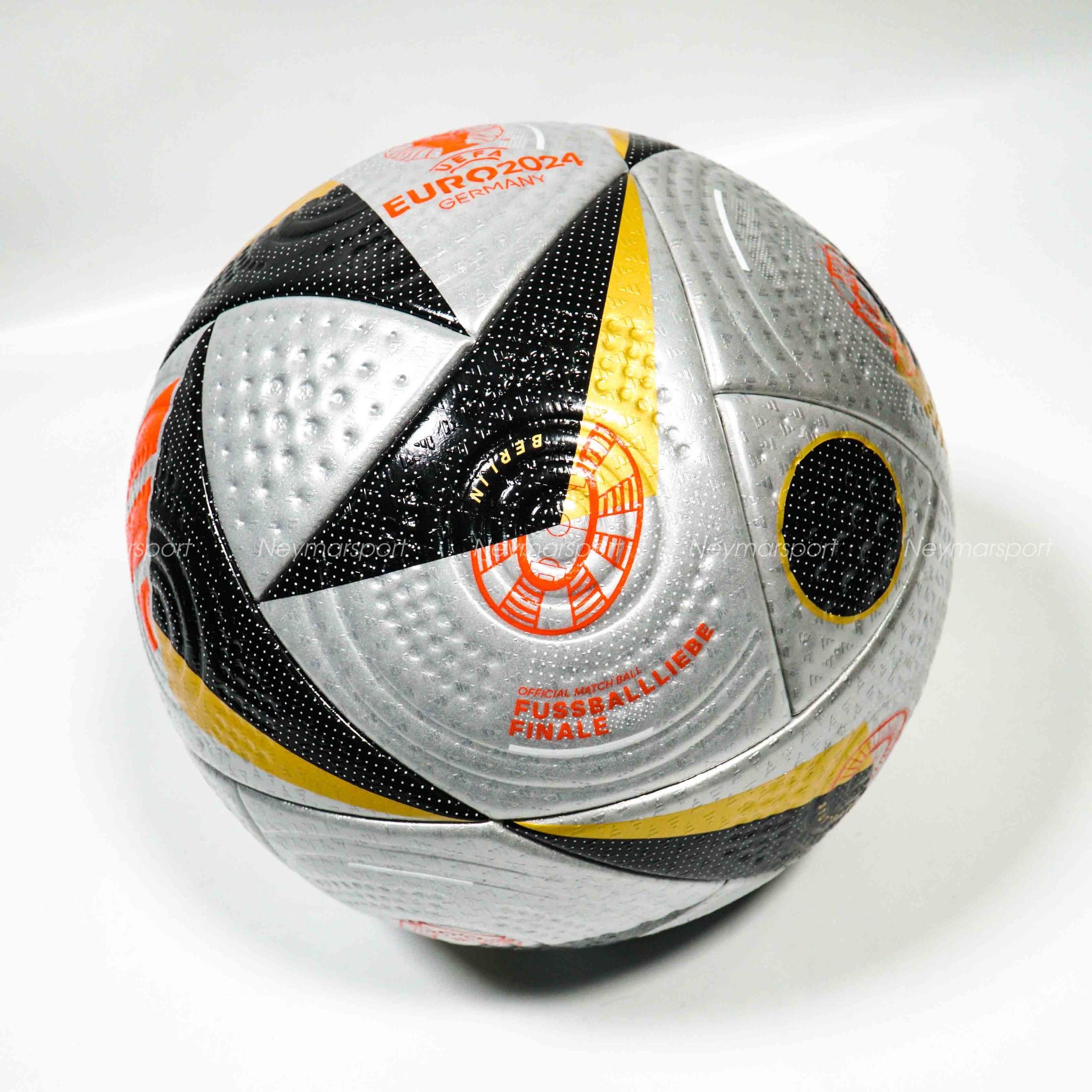 Trải nghiệm cảm giác phấn khích diệu kỳ của bóng đá quốc tế ở đẳng cấp cao nhất. Chào mừng trái bóng thi đấu chính thức của Euro 2024, Fussballliebe Pro. Vươn tới đấu trường lớn nhất của bóng đá châu Âu với trái bóng làm từ chất liệu cao cấp đảm bảo hiệu năng hoàn hảo trên sân. Cấu trúc dập chìm tân tiến mang lại sự chuẩn xác, cùng kết cấu ép nhiệt không đường may đảm bảo khả năng kiểm soát chính xác. Họa tiết màu Silver/Gold Metallic/Black độc đáo và nổi bật. Đây là quả bóng sẽ thi đấu trong 2 trận bán kết và trận Chung Kết Euro 2024 tới đây