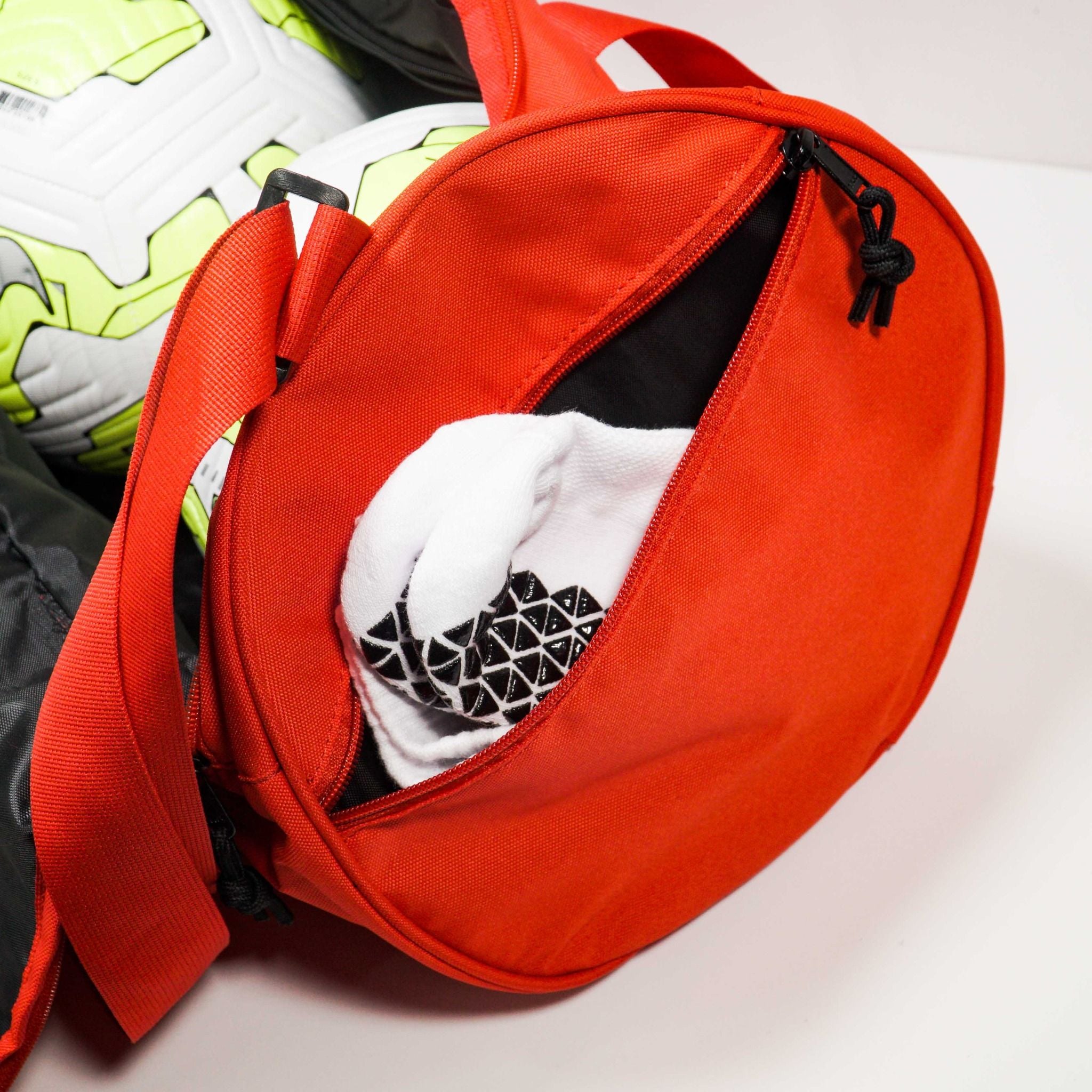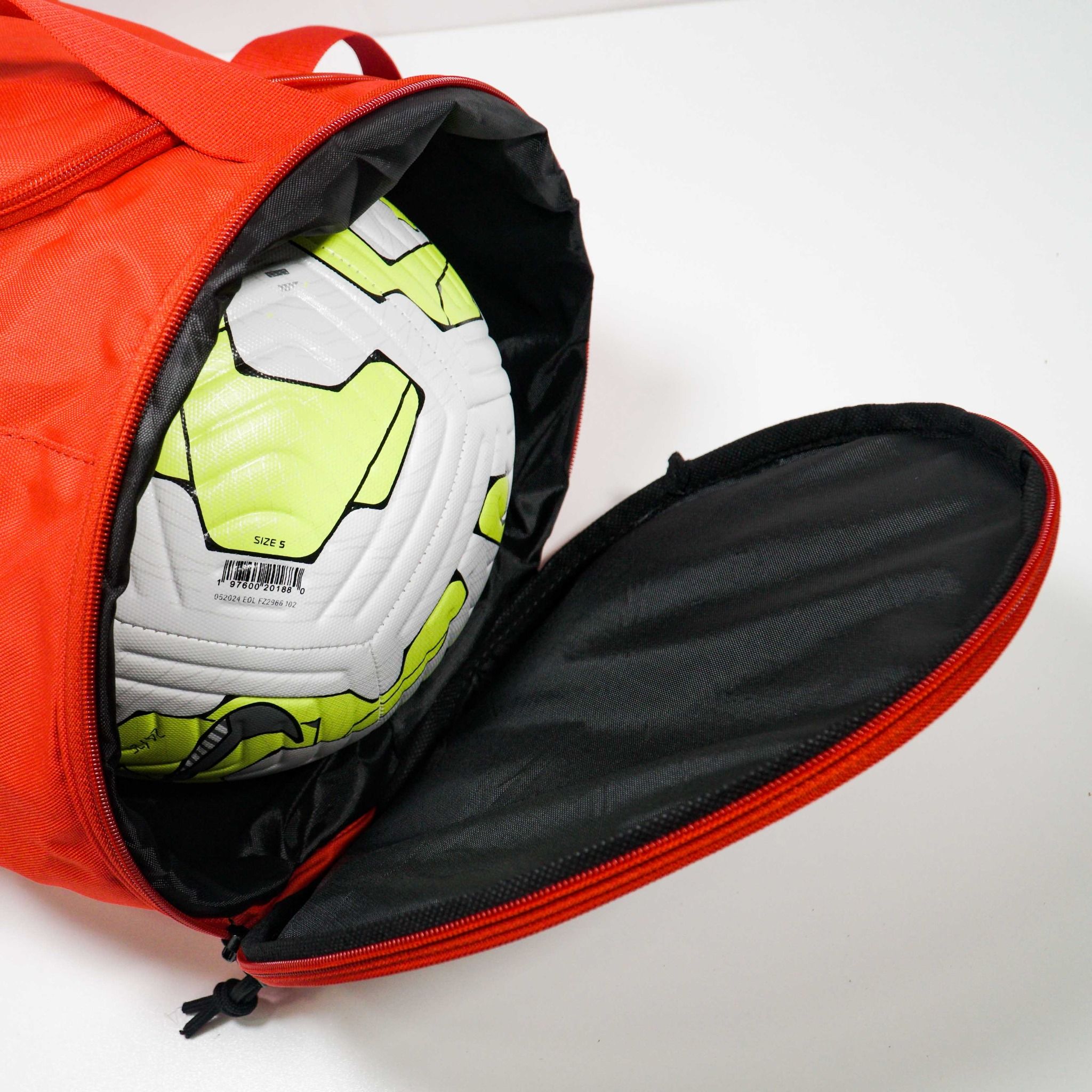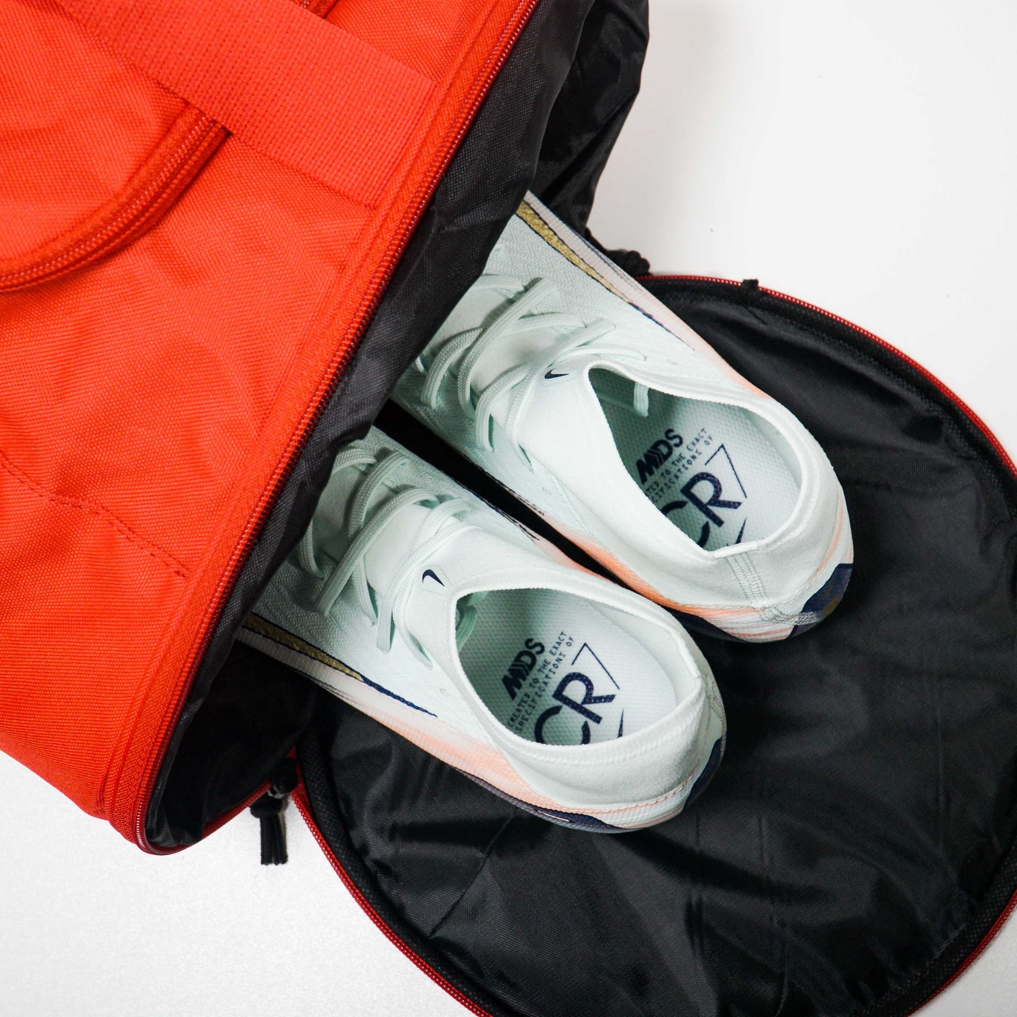 - Bên hông túi là một ngăn đựng giày hoặc bóng ( bóng size 5 đựng thoải mái), ngăn còn lại đựng phụ kiện như tất, chai xịt nóng,...