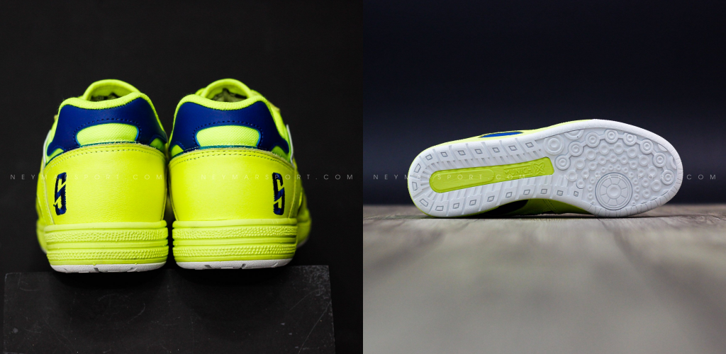 Công nghệ: Bộ đế cao su Vulcanized bám sân, bộ đệm Eva êm ái và lót đệm Elastic Foam chống trượt.